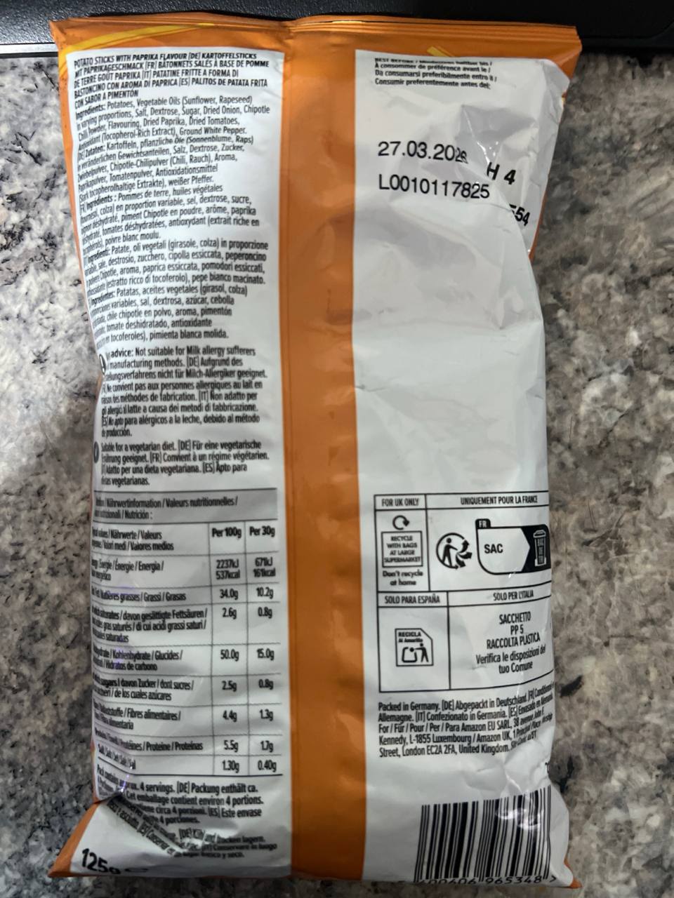 Amazon Palitos De Patata Pimentón 125g