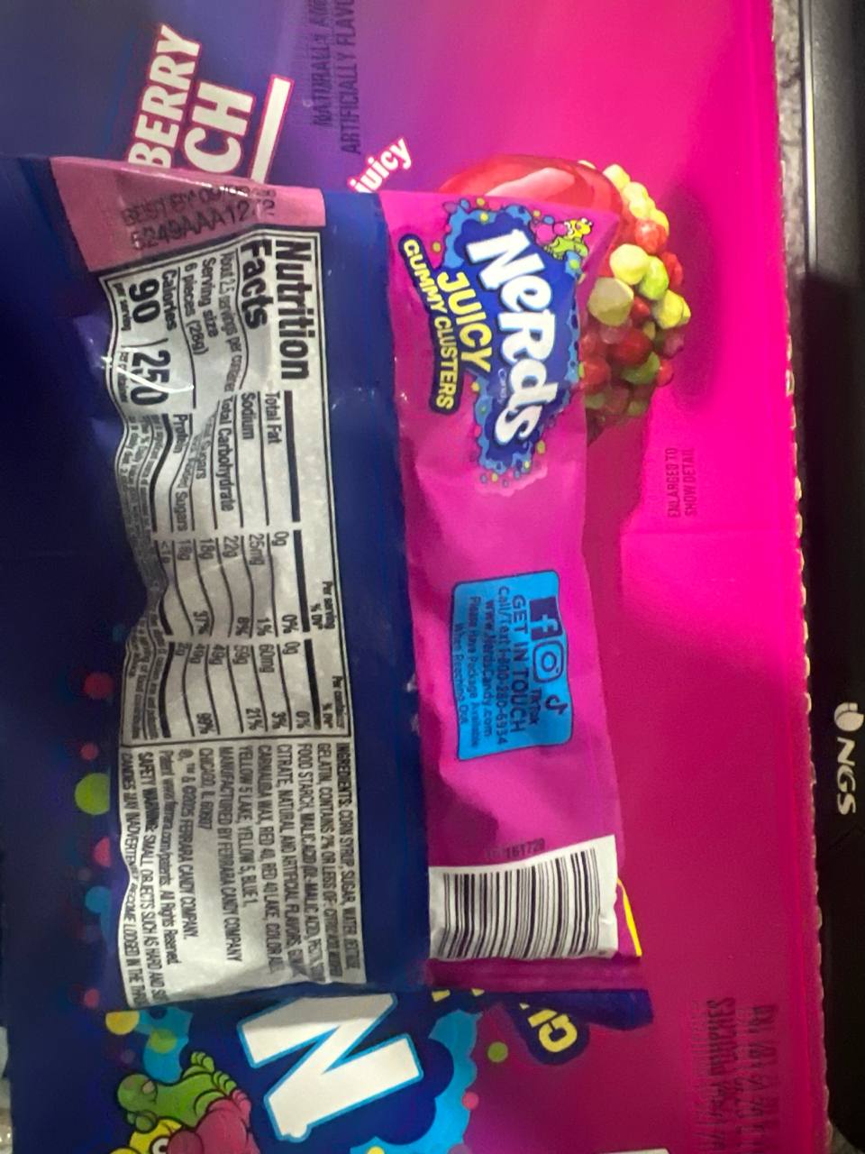 Disfruta de la explosión de sabor de Nerds Gummy Clusters Juiced, una combinación irresistible de centro de gominola suave cubierto con los clásicos mini Nerds crujientes.