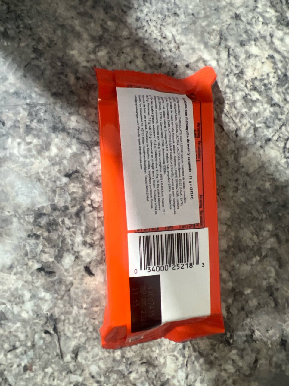 Chocolate con leche (azúcar, manteca de cacao, pasta de cacao, leche en polvo), mantequilla de cacahuete, azúcar, jarabe de maíz, caramelo, emulgentes (lecitina de soja), aromas.