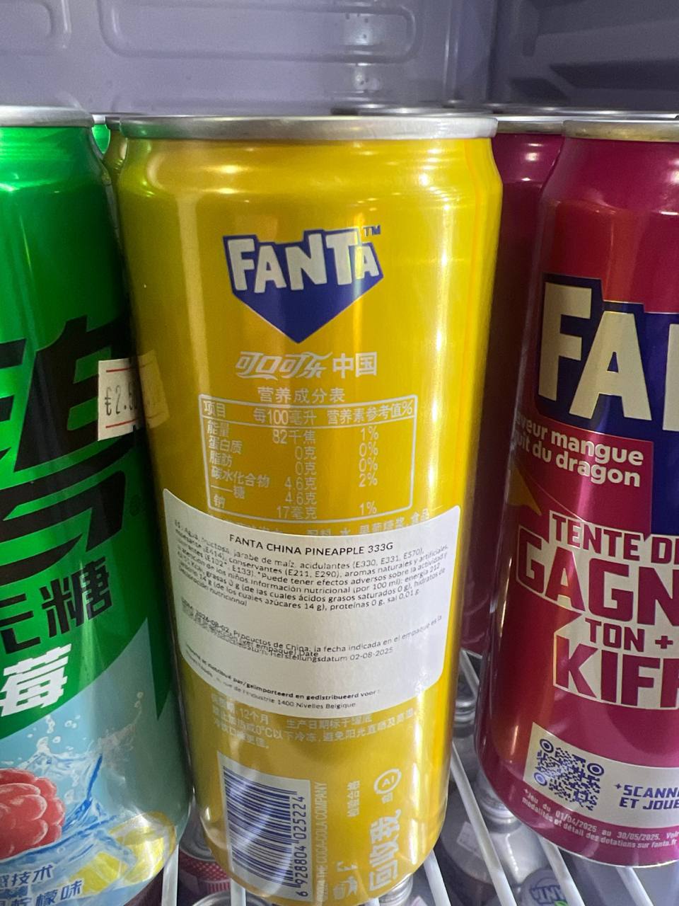 Disfruta de un sabor tropical y vibrante con Fanta China Pineapple 330ml, una edición especial directamente desde China con un intenso y refrescante sabor a piña. Su dulzura equilibrada y su aroma frutal hacen de esta Fanta una experiencia única, diferente a cualquier versión europea o americana.