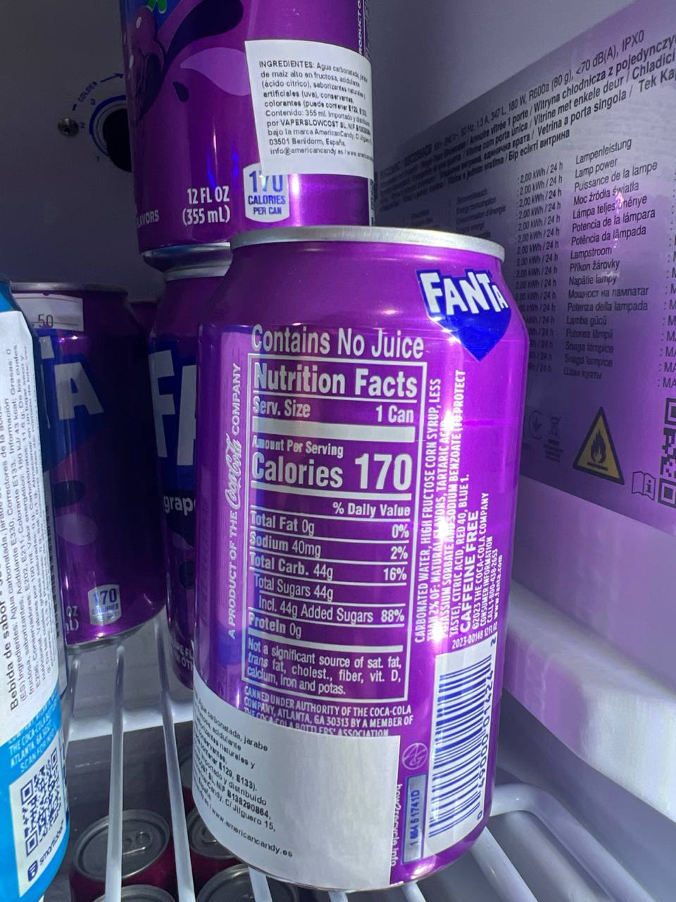 La Fanta Grape es una bebida con gas sabor uva, intensa, dulce y con ese toque frutal que la hace inconfundible. Su color morado brillante y su burbujeante frescura la convierten en una de las Fantas más populares en Estados Unidos. ????????
