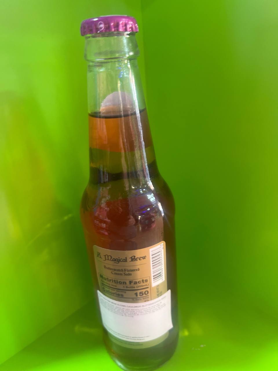 La Harry Potter Flying Cauldron Butterscotch Beer 355ml es la bebida oficial inspirada en la famosa Cerveza de Mantequilla del universo mágico. Elaborada como un refresco sin alcohol, combina un sabor dulce y cremoso con notas de caramelo y mantequilla, evocando la experiencia que los fans han visto en las películas y leído en los libros de Harry Potter.