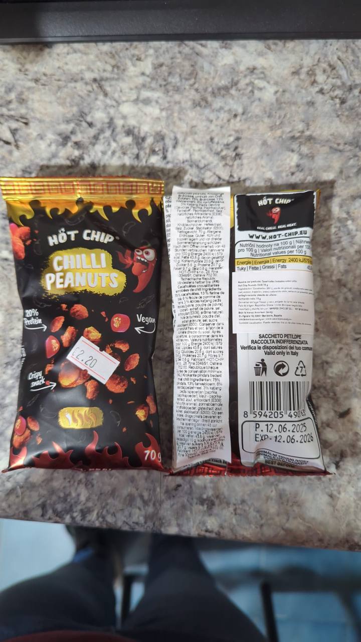 Los Hot Chip Peanuts Chilli 70g combinan el crujido de los cacahuetes tostados con el toque especiado del chile. Un snack de sabor intenso, con un picante equilibrado que lo hace perfecto para disfrutar en cualquier momento, sin llegar a lo extremo.