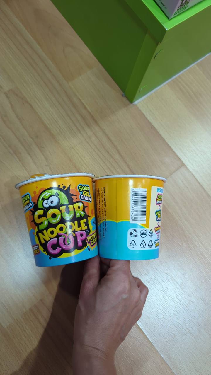 Haz más divertidos tus momentos dulces con Johny Bee Candy Sour Noodle Cup. Este original vaso de 65 g contiene tiras de caramelo blando en forma de fideos, con un intenso sabor ácido y frutal que despierta tus sentidos desde el primer bocado.
