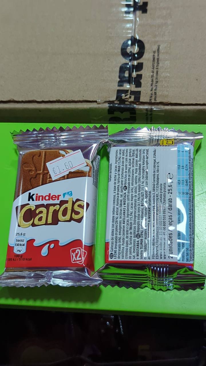 Las Kinder Cards son unas deliciosas galletas finas y crujientes con un irresistible relleno cremoso de leche y cacao, inspiradas en el inconfundible sabor Kinder. Su formato tipo “card” las hace ligeras, fáciles de comer y perfectas como snack o merienda.