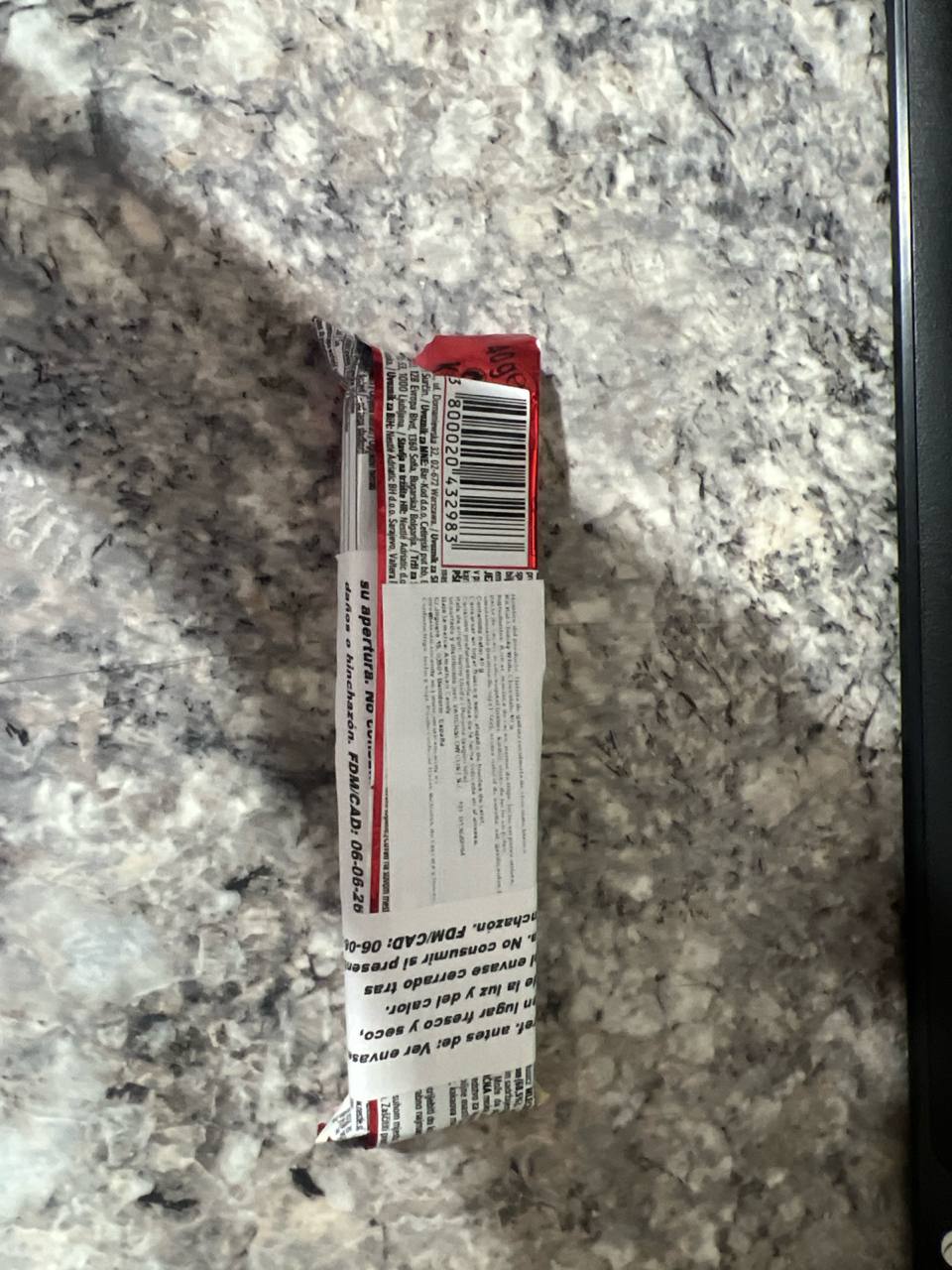 Oblea crujiente recubierta con chocolate blanco cremoso.