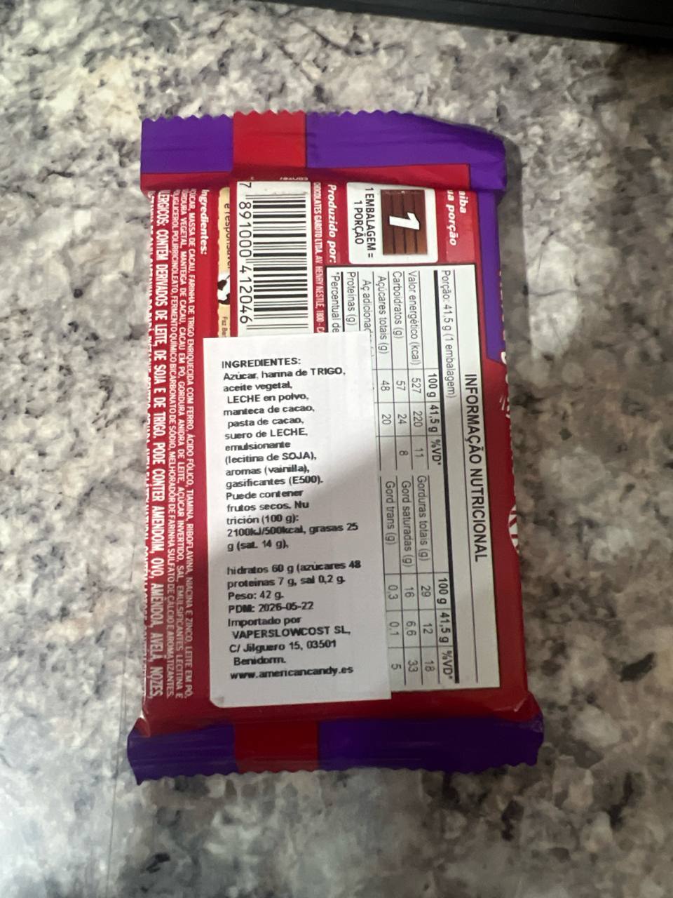 (Cada barrita de 41.5 g aporta aprox. 221 kcal)