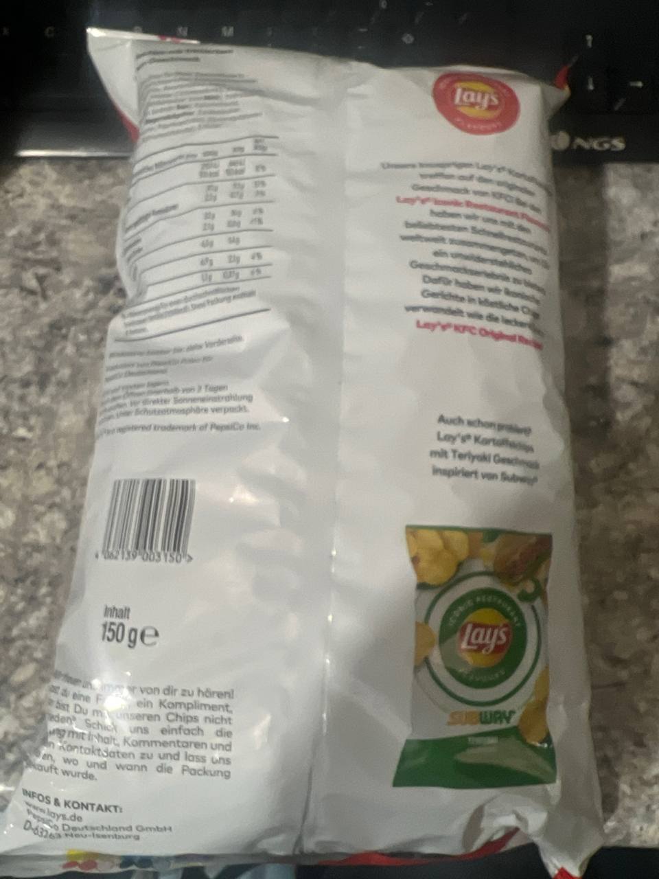 Las Lay’s KFC Chicken 150g traen a tus manos la fusión perfecta entre las icónicas patatas fritas Lay’s y el inconfundible sabor del pollo frito de KFC. Cada bocado combina la textura crujiente y ligera de las clásicas chips con un intenso toque a pollo crujiente, especiado y sabroso, inspirado en la receta secreta de KFC.