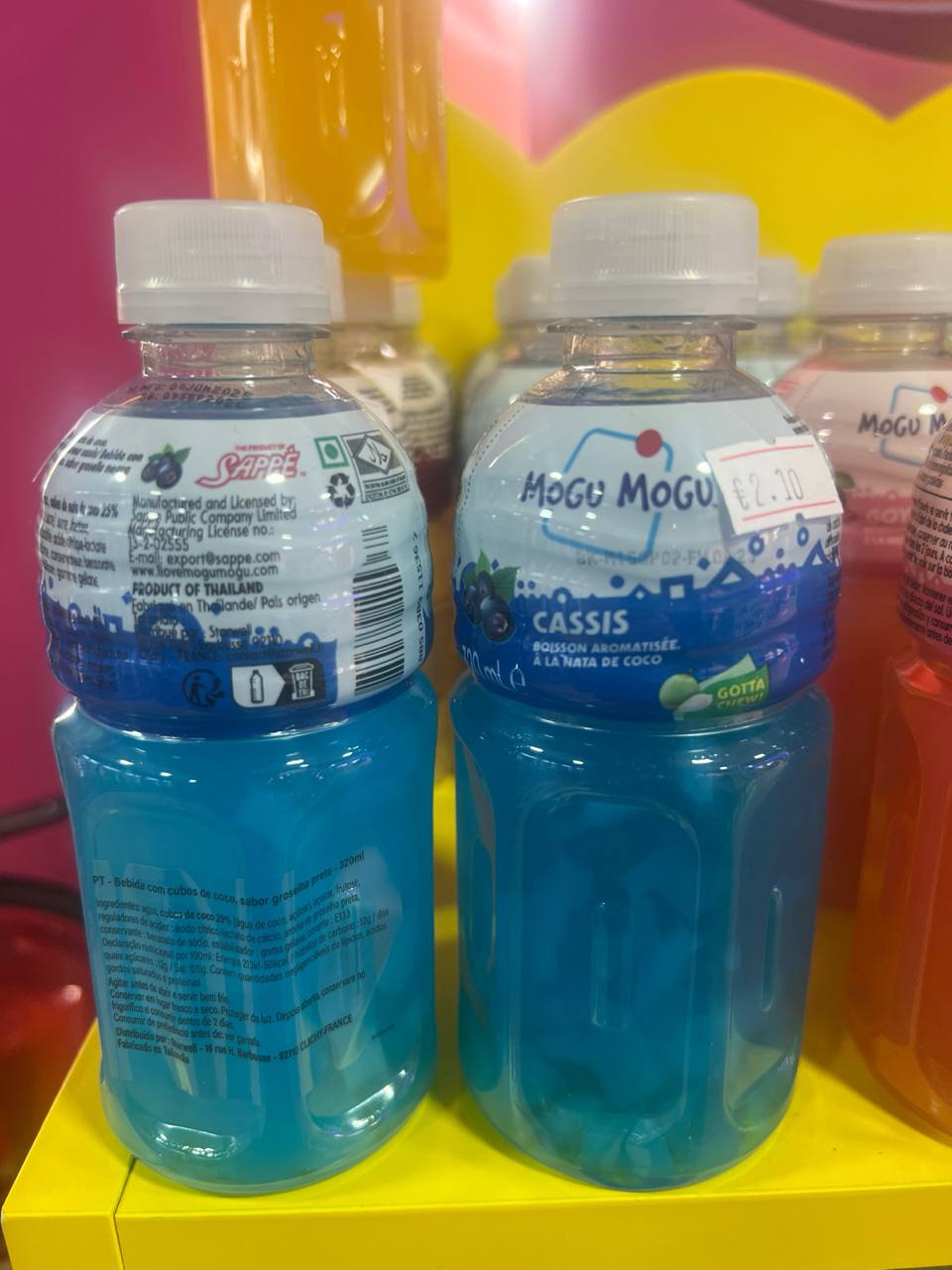 El Mogu Mogu Blackcurrant 320ml es una bebida tailandesa única que combina el intenso y afrutado sabor de la grosella negra (blackcurrant) con divertidos trocitos de nata de coco (Nata de Coco), que aportan una textura sorprendente y deliciosa.