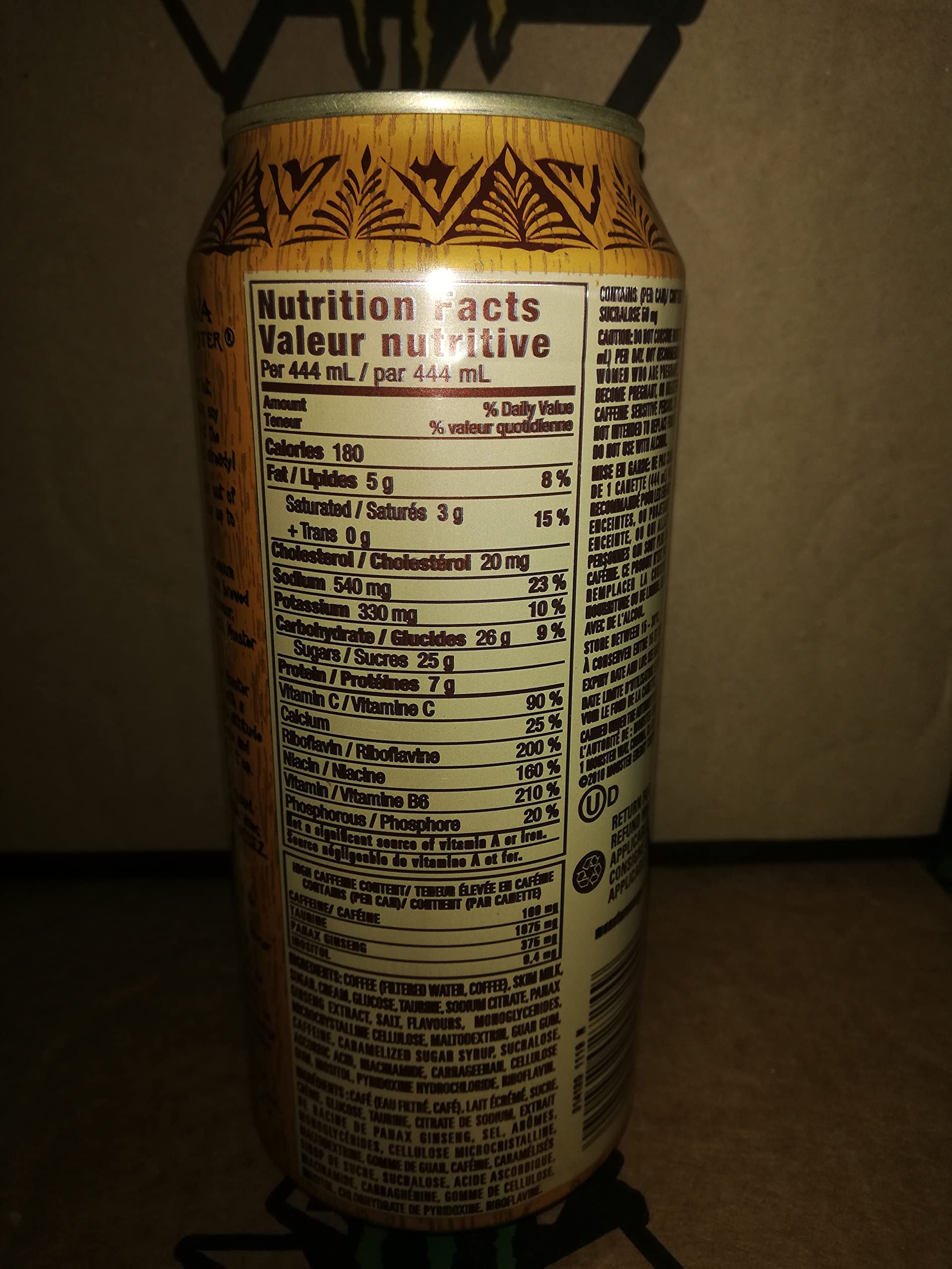 (Cada lata de 444 ml aporta aprox. 178 mg de cafeína y 231 kcal)