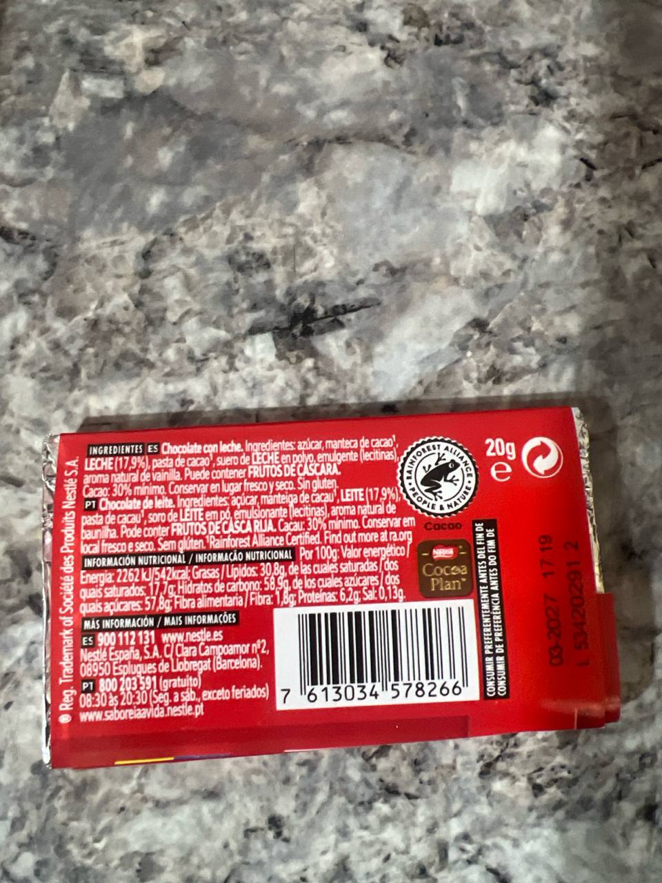 Nestlé Extrafino Chocolate con Leche (20 g)