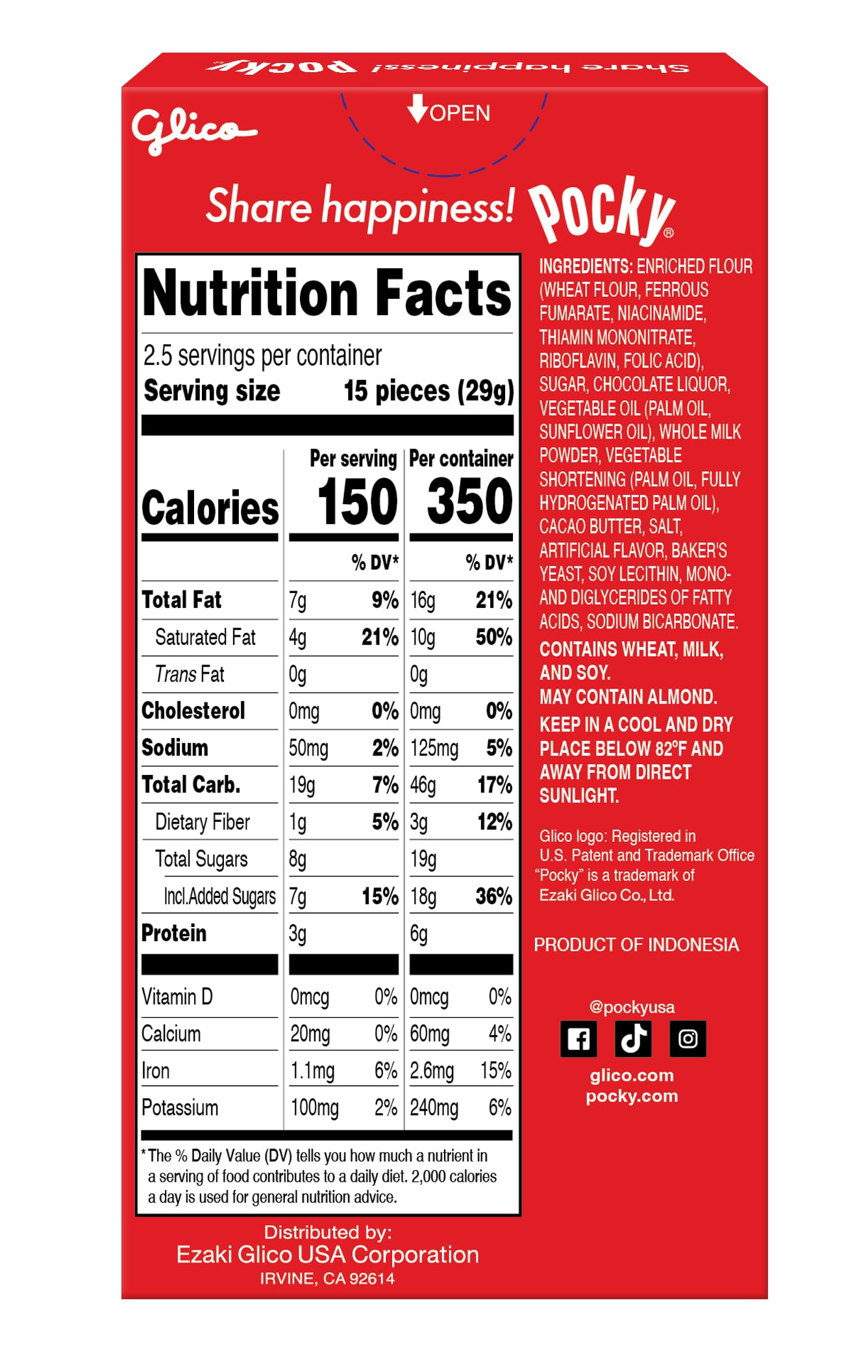 El Pocky Chocolate 47g es la versión más clásica y popular de la marca japonesa Pocky. Consiste en finos palitos de galleta crujiente recubiertos con una capa de chocolate con leche, ofreciendo un equilibrio perfecto entre lo dulce y lo ligero.