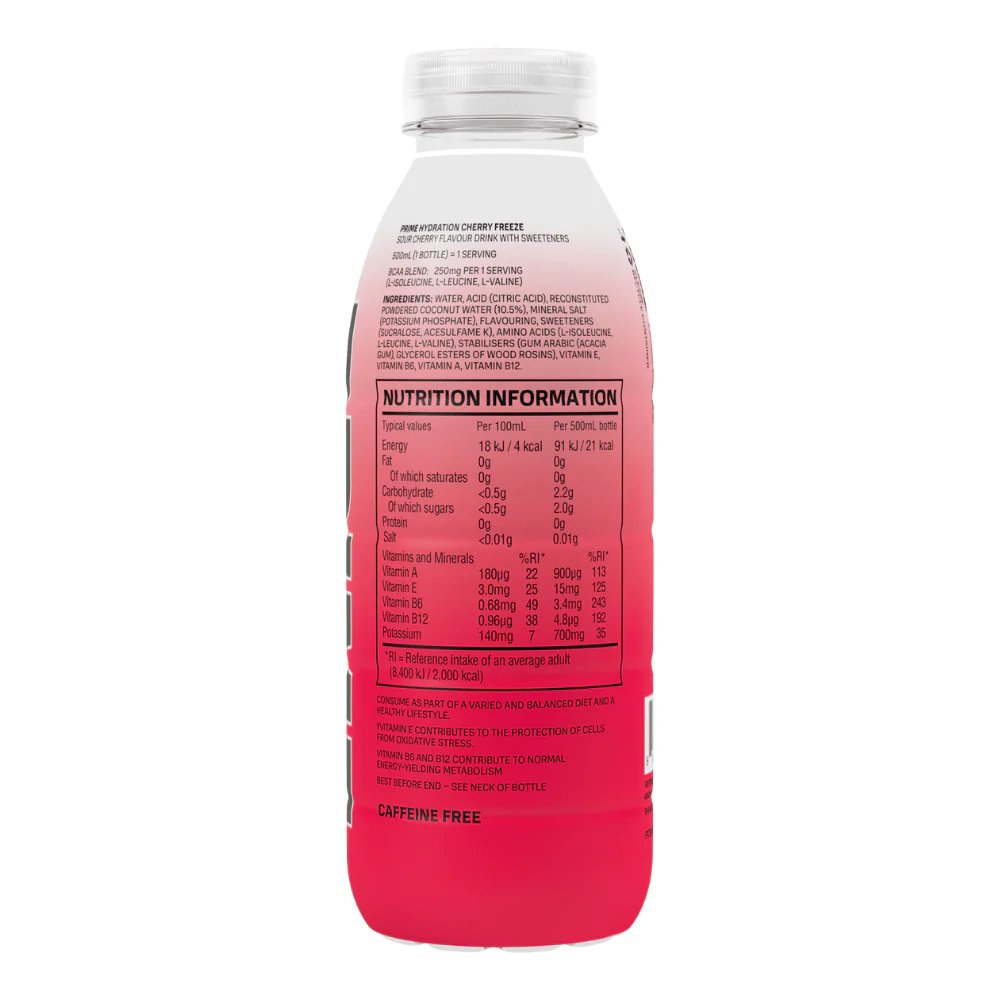 El Prime Hydration Cherry Freeze 500ml es una de las bebidas más esperadas de la marca Prime, creada por Logan Paul y KSI. Con un refrescante sabor a cereza helada, esta bebida isotónica está diseñada para mantener la hidratación gracias a su mezcla de electrolitos, vitaminas y antioxidantes, sin azúcares añadidos.