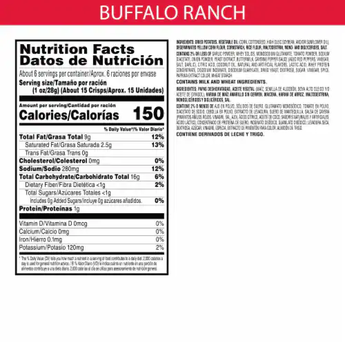 Patatas crujientes con sabor a salsa buffalo y ranch.