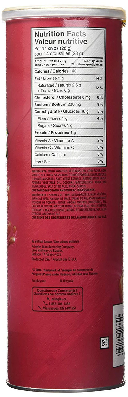 Las Pringles Chips Ketchup 156g son una de las ediciones más icónicas y populares de la marca en países como Canadá. Cada bocado ofrece el sabor ácido, dulce y ligeramente especiado del kétchup, combinado con la textura crujiente de las clásicas patatas Pringles.