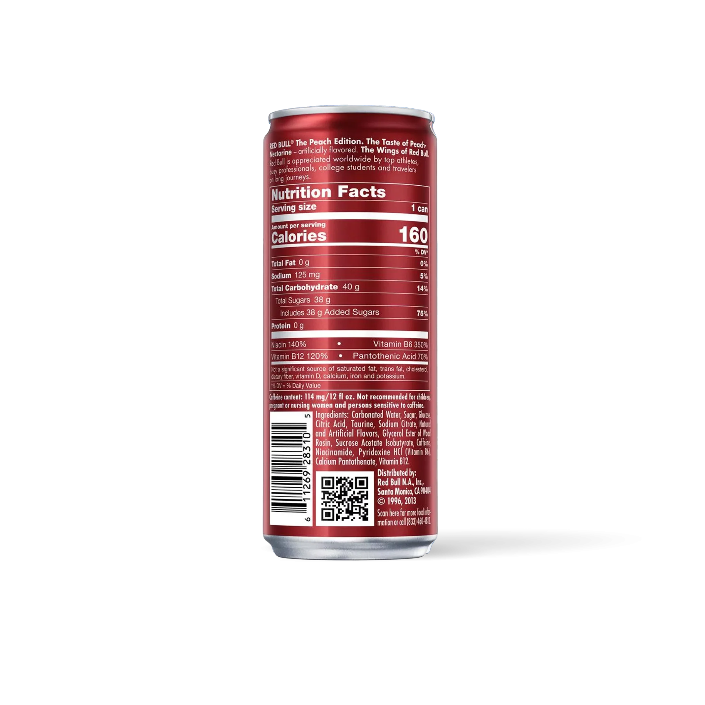 Disfruta de un impulso de energía con un sabor suave y afrutado gracias a la Red Bull Peach Edition. Esta bebida energética combina la fórmula original de Red Bull con el toque jugoso, dulce y refrescante del melocotón, creando una experiencia deliciosa para quienes buscan algo distinto en su energía diaria.