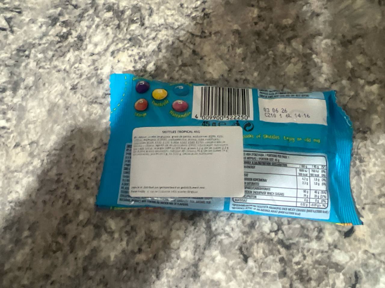 Viaja a un paraíso de sabor con Skittles Tropical. Estos caramelos masticables, en su práctica presentación de 45 g, combinan una mezcla de sabores tropicales intensos y refrescantes que te harán sentir el verano en cada bocado. Ideales para llevar en el bolsillo, compartir con amigos o disfrutar como snack en cualquier momento del día.
